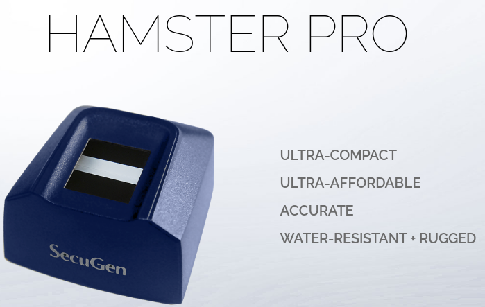The Hamster Pro is SecuGen’s ultra-compact, high image quality USB fingerprint reader that is very low priced and suitable for large deployments. Featuring a low-profile and water-resistant design, the Hamster Pro is built with the industry’s most rugged and advanced optical sensor using patented fingerprint technology. The Hamster Pro can be used for authentication, identification and verification functions that let your fingerprints act like digital passwords that cannot be lost, forgotten or stolen.